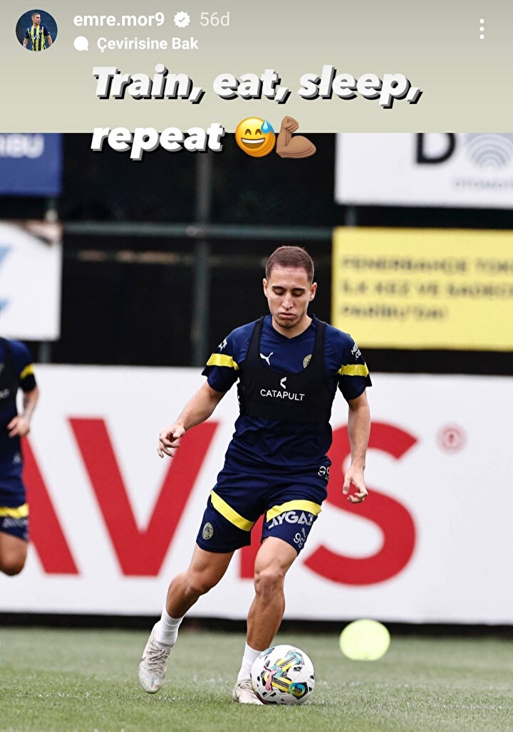 Futbolcular 2-3 haftadır izin yapmıyor. Emre Mor paylaşımda “Antrenman, yemek, uyku tekrar” diyerek yoğun tempoya vurgu yaptı.
