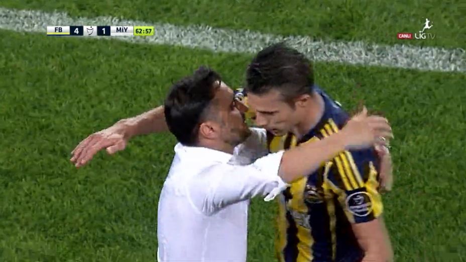Hollandalı oyuncu gol sevincini yedek kulübesine koşarak teknik direktör Vitor Pereira ile birlikte yaşayınca Kadıköy'de kızılca kıyamet koptu. Van Persie - Vitor Pereira ikilisinin uzun süre sarılmasına tepki gösteren Fenerbahçe taraftarları bu ikiliyi uzun süre ıslıklarla protesto etti.