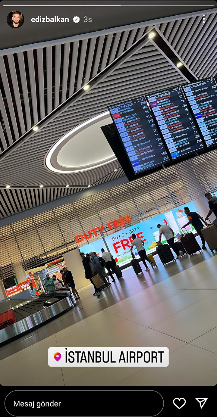 Diğer taraftan Senegalli oyuncunun menajeri Ediz Balkan, Instagram hesabı üzerinden İstanbul Havalimanı'ndan hikaye paylaşımı yaptı.