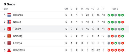 2022 Dünya Kupası Elemeleri G Grubu yedinci maçında Türkiye, sahasında Norveç ile karşılaştı. Müsabaka 1-1’lik eşitlikle sona erdi.