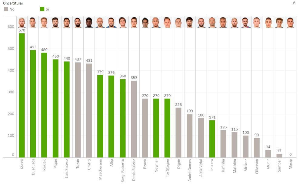 Katalan ekibinde en çok süre alan isimler 570 dakikayla Messi ve 493 dakikayla Sergio Busquets oldu.