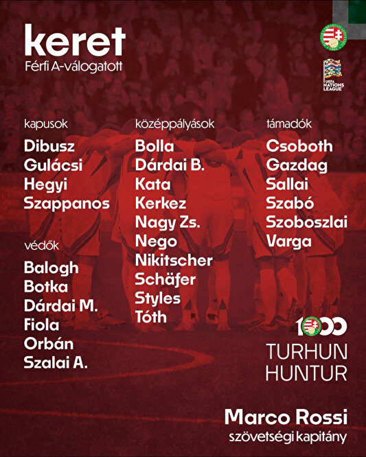 UEFA Uluslar Ligi play-off turunda Türkiye ile karşılaşacak Macaristan Milli Futbol Takımı'nın aday kadrosu açıklandı.