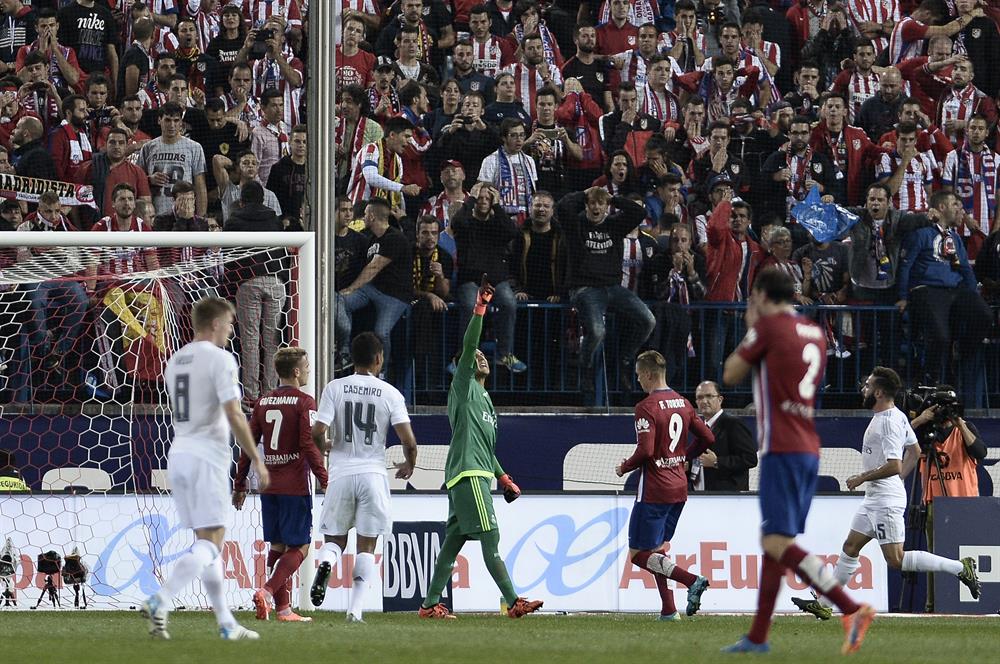 22. dakikada Sergio Ramos'un Tiago'yu ceza sahasında düşürmesi sonrasında maçın hakemi Undiano Mallenco, Atletico Madrid lehine penaltı verdi. Topun başına geçen Antoine Griezmann'ın vuruşunda yatarak güzel bir kurtarış yapan kaleci Keylor Navas, Real Madrid'in skor üstünlüğünü devam ettirmesini sağladı.