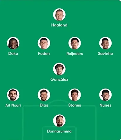 Manchester City cephesinde tek eksik isim Mateo Kovačić. Ayak bileği sakatlığı sebebiyle tedavisi süren orta saha oyuncusu, kadroda yer almayacak. Pep Guardiola’nın, form grafiği yükselen genç oyuncularına bu maçta da şans vermesi bekleniyor. Rodri’nin yavaş yavaş forma girmesi planlanırken, İspanyol yıldızın bu maçta dinlendirilme ihtimali yüksek. Tijjani Reijnders, Rayan Aït-Nouri ve John Stones’un ilk 11’de yer alması bekleniyor.