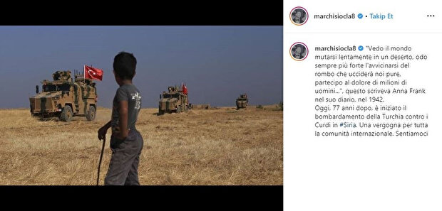 Türkiye'yi suçlayan İtalyan eski futbolcu paylaşımında, "Türkiye, Suriye’deki Kürtleri bombalamaya başladı. Bu tüm dünya için büyük bir utanç" şeklinde skandal ifadeler kullandı.
