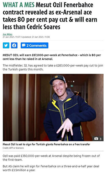 İngiliz basını, Fenerbahçe'ye transfer olan Mesut Özil'in sarı lacivertlilerden kazanacağı ücreti açıkladı. Türk asıllı Alman futbolcunun Arsenal'deki kazancına göre indirime gittiği aktarılırken buna rağmen önemli bir gelir elde edeceği belirtildi.