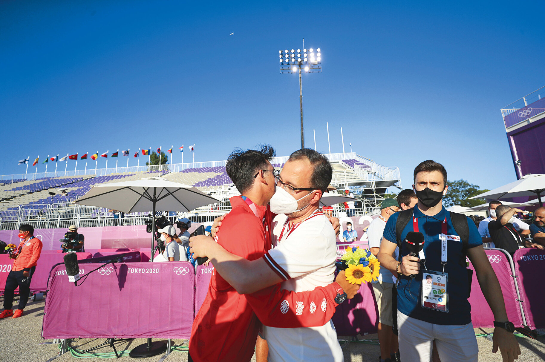 Gençlik ve Spor Bakanı Dr. Mehmet Muharrem Kasapoğlu, spor psikoloğunun önerisi üzerine Mete Gazoz’un final karşılaşmasını tribünden seyretmedi. Funal öncesi Yumenoshima Okçuluk Alanı’na gelen Bakan Kasapoğlu, psikolog Cem Doğuhan Gizep’in önerisi üzerine tribüne çıkamadı. Karşılaşmayı kapalı bir alanda takip eden Bakan Kasapoğlu, müsabakanın sona ermesiyle tribüne gelerek Mete’nin şampiyonluğuyla büyük sevinç yaşadı. Mete Gazoz’un karşılaşmalarını Türkiye Milli Olimpiyat Komitesi Başkanı Uğur Erdener de yerinde izledi.