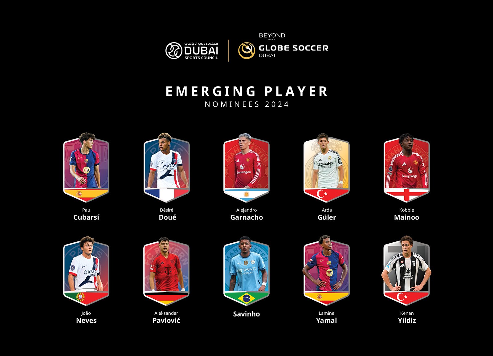 İspanya ekibi Real Madrid'de oynayan Arda Güler ile İtalya'nın Juventus takımında görev yapan Kenan Yıldız ise "2024'ün Yükselen Oyuncusu" kategorisindeki adaylar arasında yer buldu.