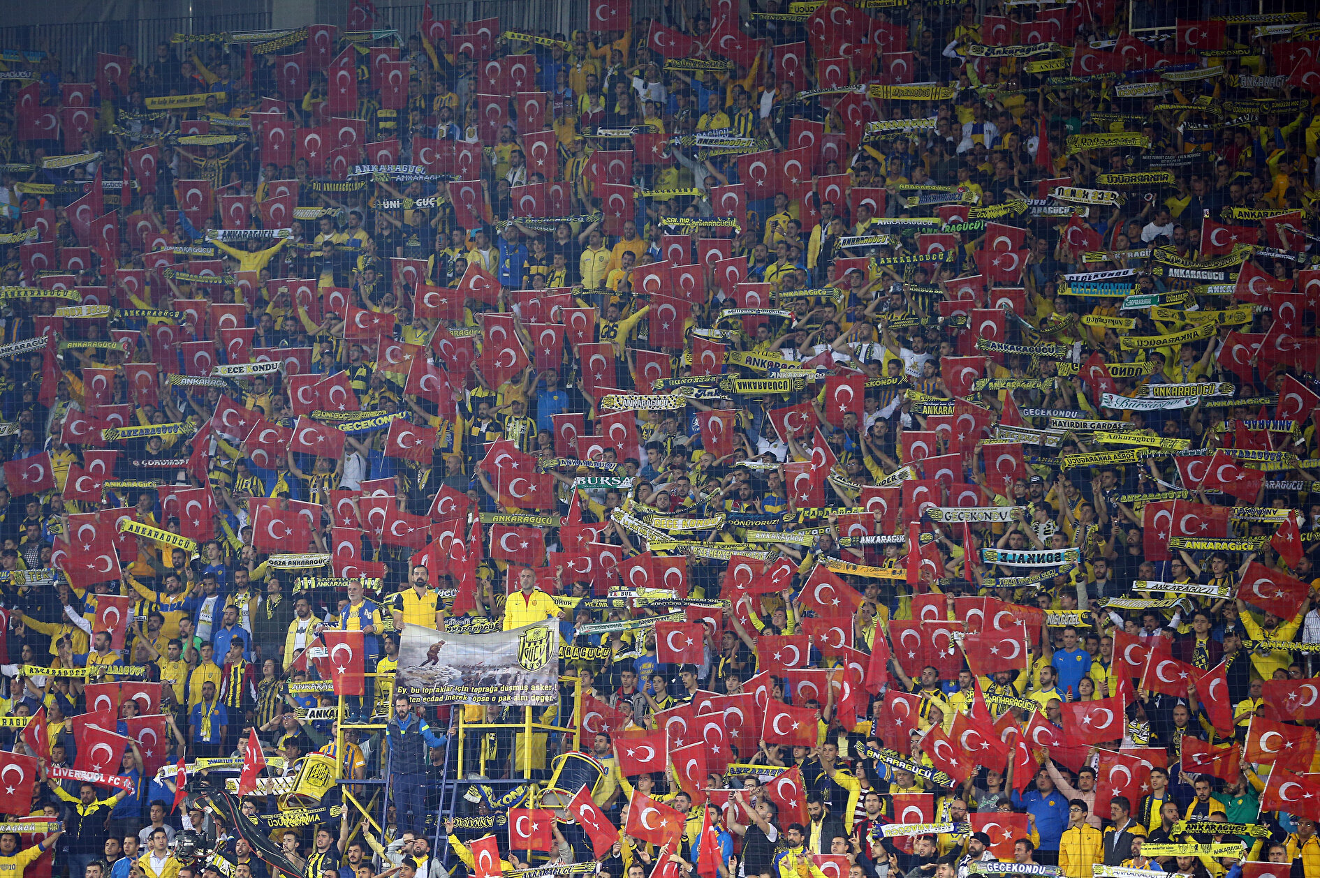 - Ayrıca maraton tribününde yer alan MKE Ankaragücü taraftarı, İstiklal Marşı sırasından dev Türk bayrağı ve "İmalat-ı Harbiye'den Beri Hepimiz Mehmet'iz" yazılı pankart açtı. Bazı taraftarlar, İstiklal Marşı sırasında asker selamı verdi.