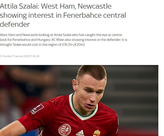 İngiliz basınından Sky Sports'un haberine göre, Milan'ın yakından takip ettiği Attila Szalai için, West Ham United ve kulüp sahiplerinin maddi varlıklarına göre yapılan sıralamada dünyanın en zengin kulübü olan Newcastle United da eklendi.