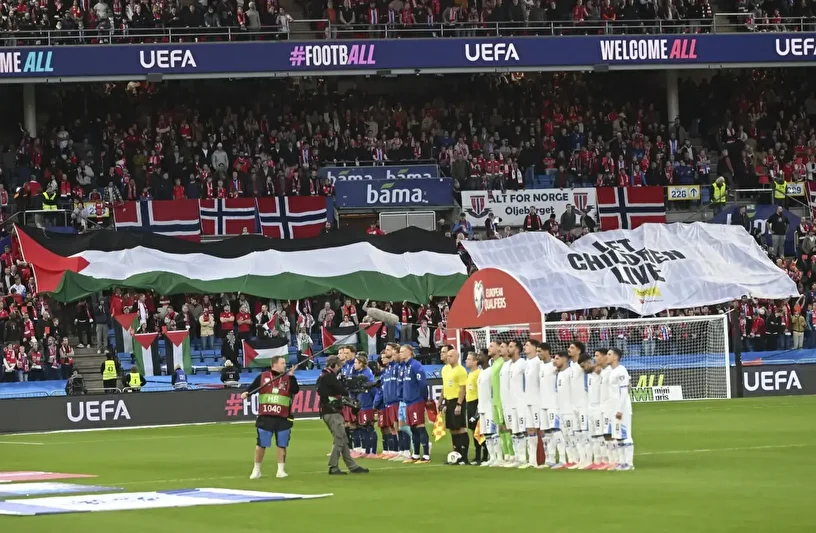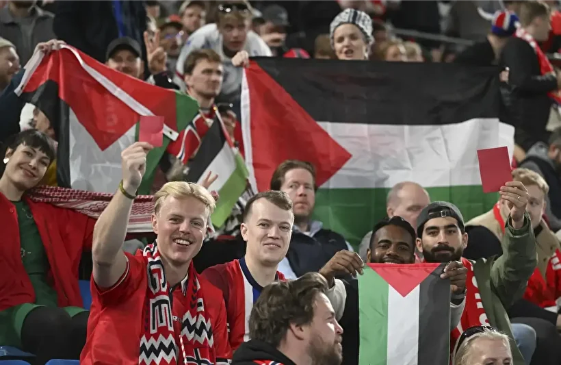 Norveçli taraftarlar, federasyonun izin vermesiyle stada Norveç ve Filistin bayraklarıyla gelerek desteklerini sürdürdü.