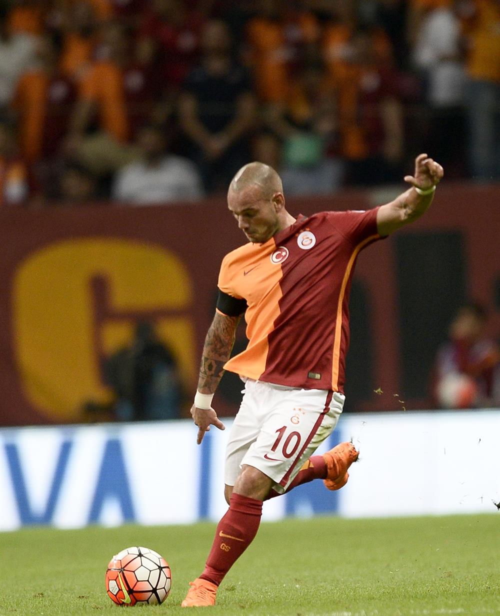 Sarı kırmızılı ekipte bu kez Sneijder, kaleyi yokladı ama top savunma engeline takıldı.