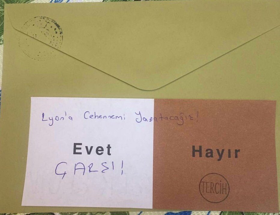 Galatasaray, Trabzonspor ve Fenerbahçeli taraftarları oy pusulasına yazdığı mesajlardan sonra bir Beşiktaş taraftarı da perşembe günü oynanacak Lyon maçına göndermede bulundu. Oy pusulasına 'Lyon'a cehennemi yaşatacağız' yazan taraftar bu görüntüyü sosyal medyadan paylaştı...