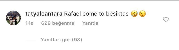 Marcelo'nun takım arkadaşı olan Rafael'in fotoğrafının altına, Beşiktaş'ın meşhur sloganı olan 'Come to Beşiktaş' yorumunu yazan Brezilyalı yıldızın eşi, siyah-beyazlı taraftarlardan da büyük destek gördü.