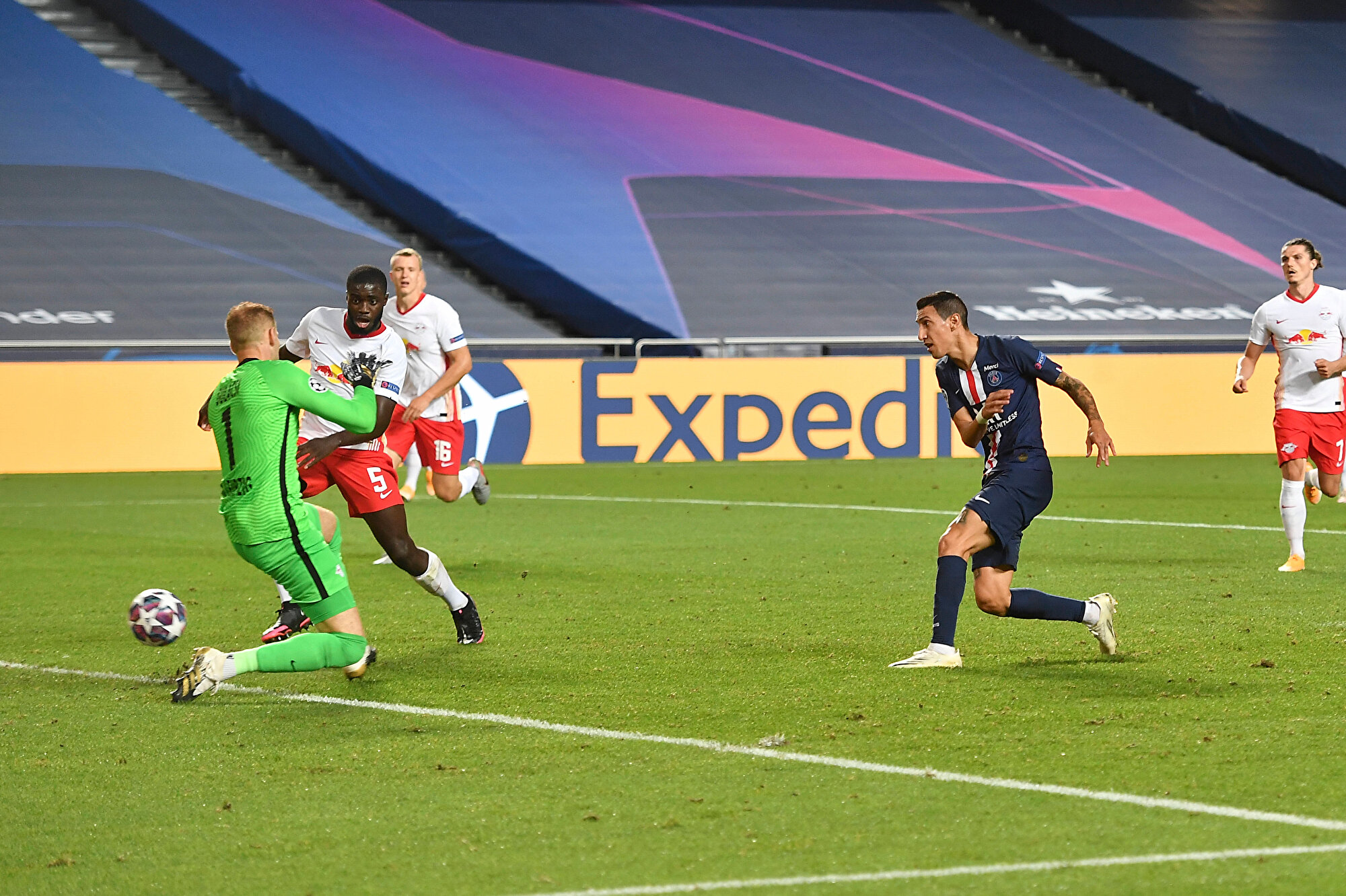 - 42. dakikada Leipzig kalecisi Gulacsi'nin baskı karşısında uzaklaştırmaya çalıştığı top kısa düştü. PSG atağına dönüşen pozisyonda Di Maria, Neymar'ın sağdan gelen pasa yaptığı dokunuşla kaleciyle karşı karşıya kaldı. Fırsatı gole çevirmekte zorlanmayan Di Maria, PSG'nin soyunma odasına 2-0 üstün gitmesini sağladı.