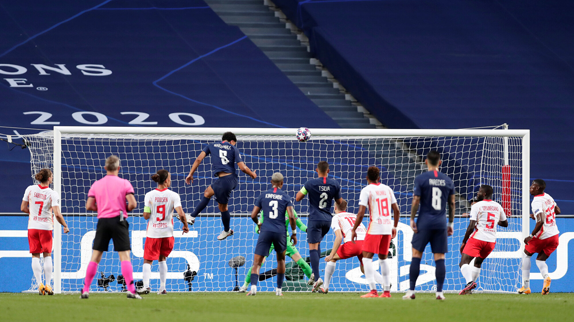 - 56. dakikda Bernat, Leipzigli Mukiele'nin ayağının kayması sonucu topu önünde bulan Di Maria'nın sol kanattan yaptığı ortada, meşin yuvarlağı kafa vuruşuyla ağlara gönderdi. PSG bu golle farkı 3'e çıkardı.