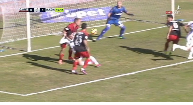 Atiker Konyaspor'un Boşnak forveti Riad Bajic, Gaziantepspor karşısında attığı ilginç golle takımını 1-0 öne geçirdi.
