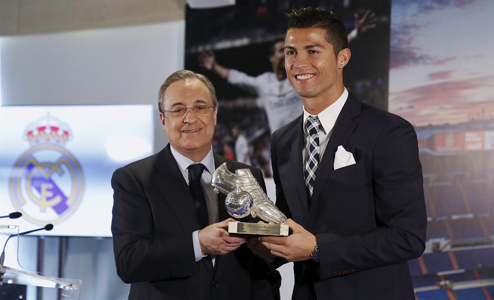Ronaldo'ya top ve ayakkabının yer aldığı bir plaket veren Perez, şöyle konuştu: