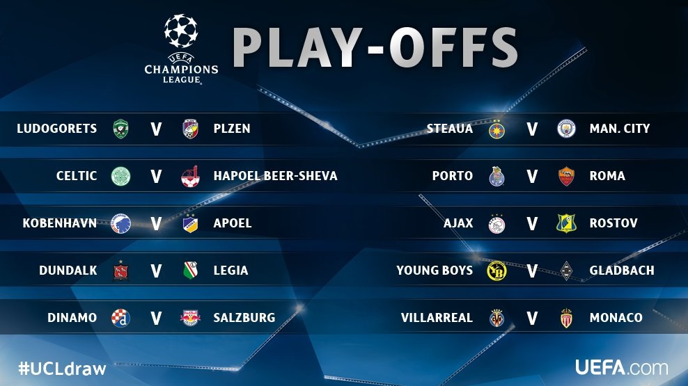 UEFA Şampiyonlar Ligi'nde gruplardan önce son ayak olan Play-Off turunda eşleşmeler belli oldu.