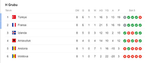 EURO 2020 Elemeleri H Grubu'nda 19 puanla ilk sırada yer alan. Milliler, Türk Telekom Stadyumu'nda oynayacağı İzlanda maçından puan alması durumunda Avrupa Şampiyonası'na gitmeyi garantileyecek.