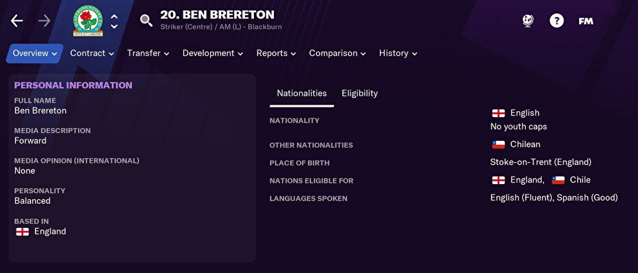 Futbol yorumcusu Serkan Akkoyun'ın aktardığına göre; Football Manager oyunu adına Blackburn Rovers'ı takip eden Mark Hitch, takımın İngiltere doğumlu forveti Ben Brereton'un annesinin Şilili olduğunu öğreniyor. Durumu fark eden Şilili FM'ciler Brereton'un milli takımda oynaması gerektiğini düşünüp kampanya başlatıyorlar. Şili hocası Martin Lasarte oyuncuyu inceliyor ve beğeniyor. Ardından milli takıma alınan forvet oyuncusu Şili formasıyla 1 gol atıyor 1 de asist yapıyor.