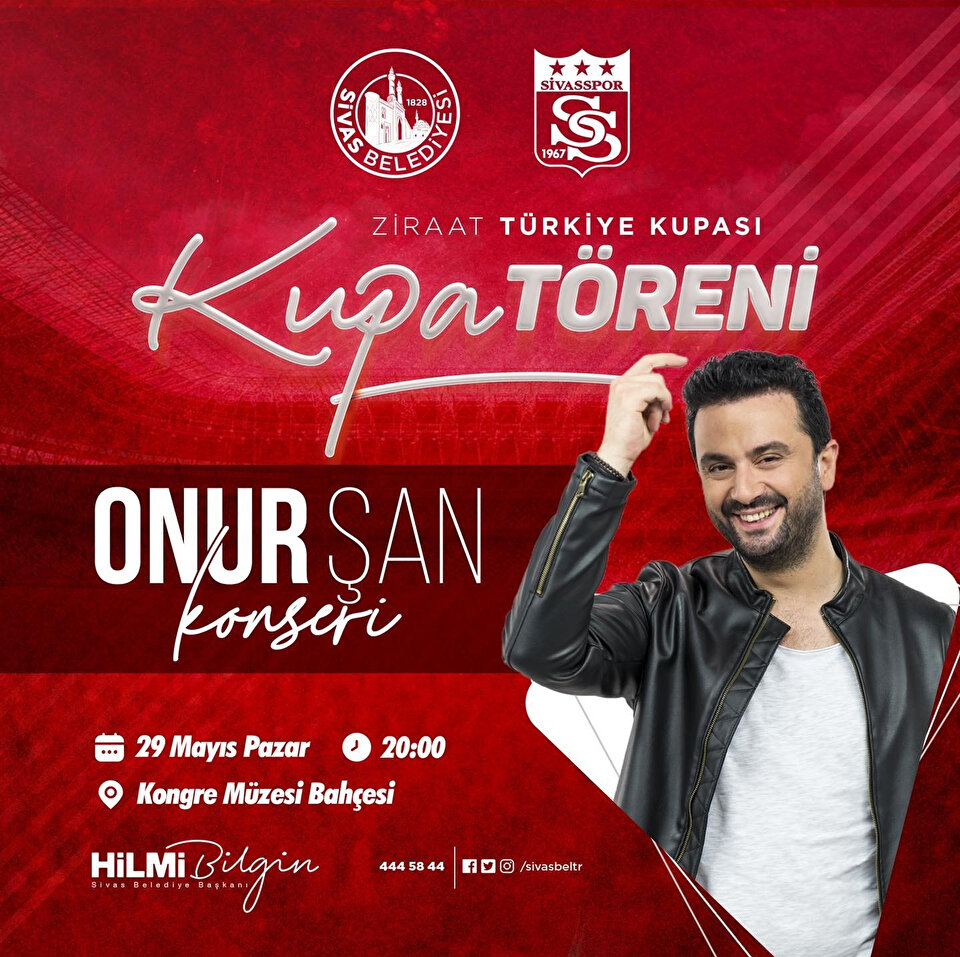 Sivas Belediyesi konu ile ilgili sosyal medya hesaplarından yaptığı paylaşıma, “O Kupa Sivas’a geldi ve şimdi kutlama zamanı. Ziraat Türkiye Kupası kupa töreninde Onur Şan sahne alacak. Tüm Yiğidolar kutlama programına davetlidir” notunu ekledi.