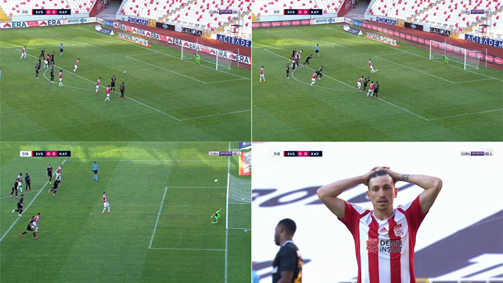 Sivasspor ile Kayserispor arasında oynanan karşılaşmada ev sahibi ekip ilk yarının hemen başında penaltı kazandı. Kırmızı beyazlılarda topun başına Mert Hakan Yandaş geldi. 25 yaşındaki futbolcu penaltıyı kalenin üstünden dışarı attı.