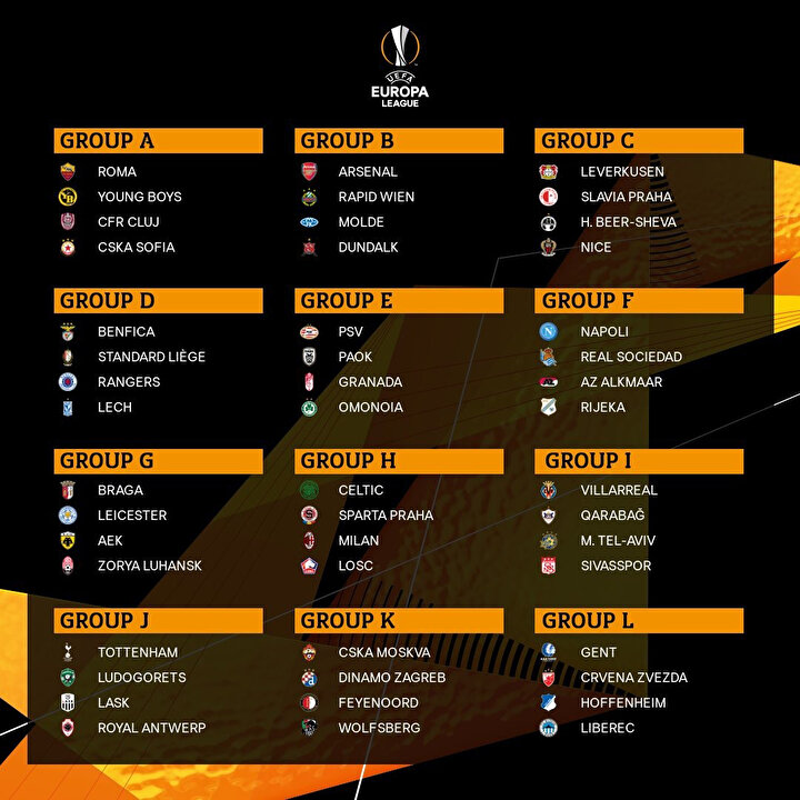 UEFA Avrupa Ligi’nde oluşan grup kuraları şöyle: