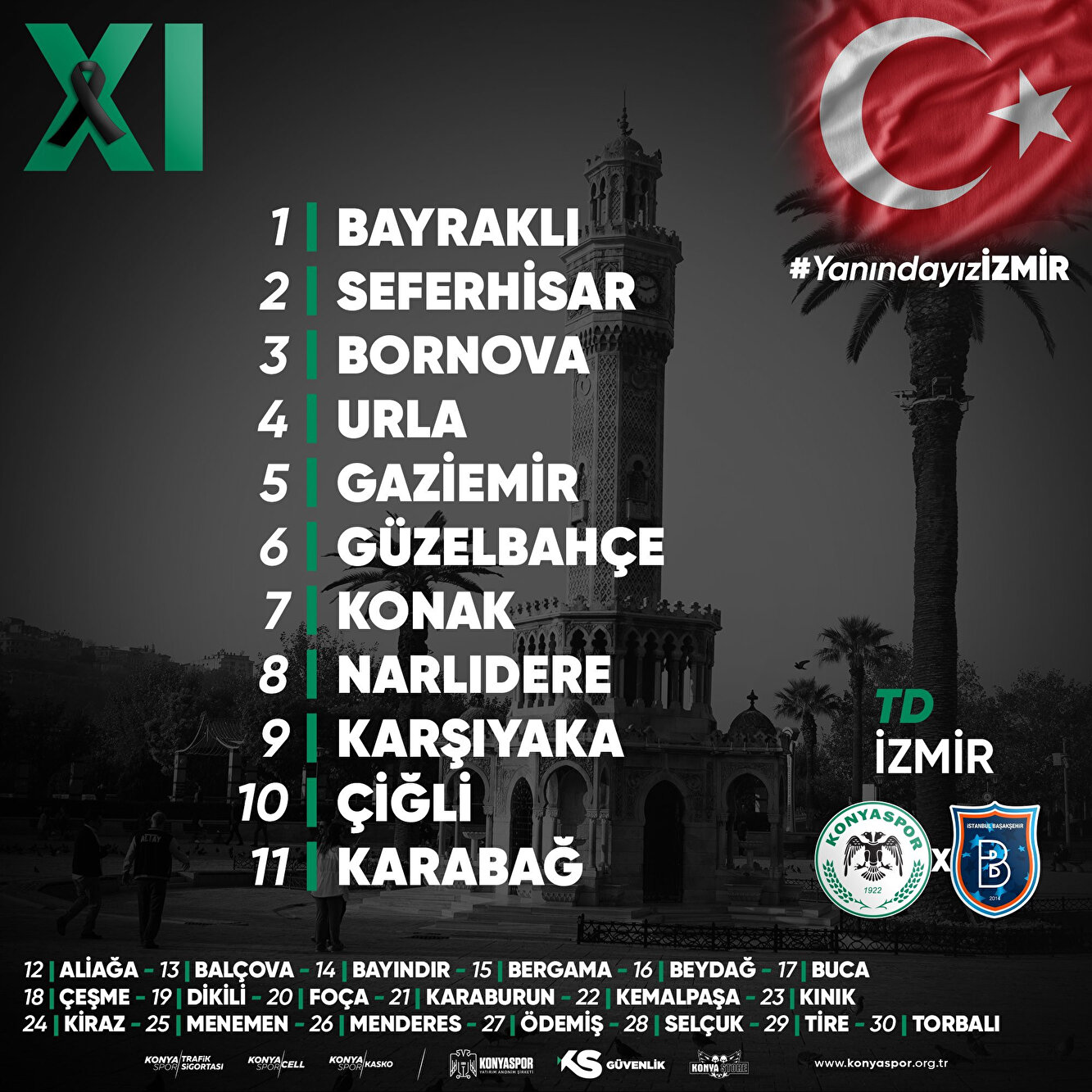 Karşılaşma öncesinde duyurulan ilk 11'lerde, Konyaspor'un oyuncularının isimleri yerine geçtiğimiz günlerde deprem felaketi yaşanan İzmir'in ilçelerine yer vermesi görenleri duygulandırdı.