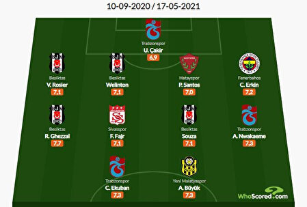Fenerbahçe'den sadece bir ismin yer aldığı 11'de sezonu ikinci tamamlayan Galatasaray'dan ise hiçbir oyuncu yer almadı.