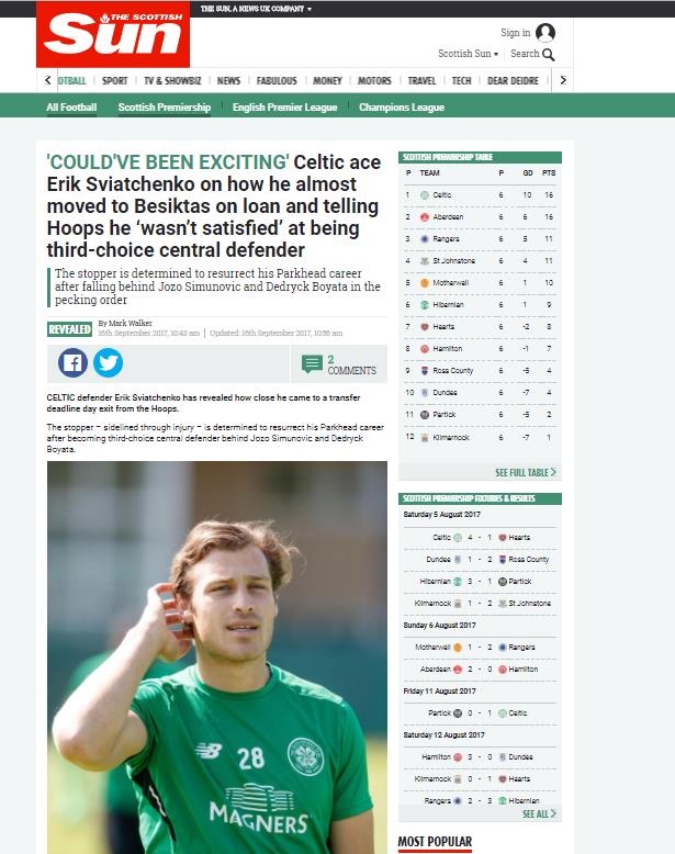 İskoç ekibi Celtic'te forma giyen defans oyuncusu Sviatchenko, Beşiktaş'a imza atmaya çok yakın olduğunu ancak transferin gerçekleşmediğini söyledi.