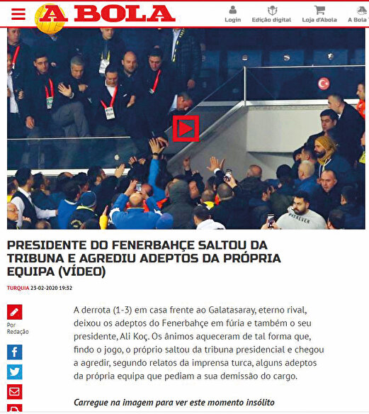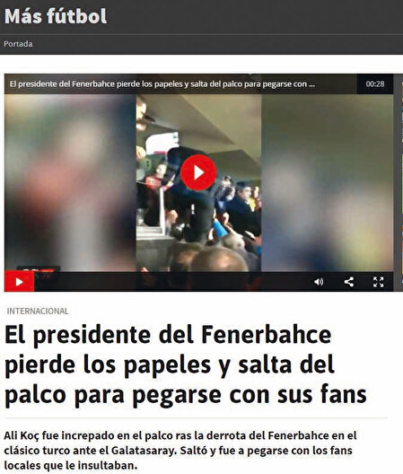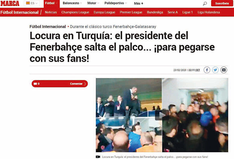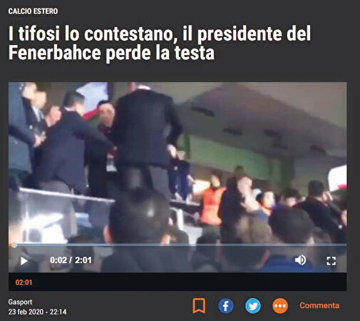 Süper Lig’in 23. haftasında kendi evinde Galatasaray’a 3-1 kaybeden Fenerbahçe’de Başkan Ali Koç, maç sonunda protokol tribününden atlayarak taraftarların arasına girdi. O sırada yaşanan hengamede Ali Koç, bir taraftar grubuyla tartışma yaşanırken, bu hareketi dış basında yankı buldu. Portekiz’in A Bola Gazetesi, “Fenerbahçe Başkanı Ali Koç, tribünden atladı ve kendi takımının taraftarlarına saldırdı” derken, İspanyollar’ın As Gazetesi “Fenerbahçe Başkanı kendini kaybetti ve taraftarların üzerine atladı” ifadelerini kullandı. İspanya’dan Marca Gazetesi, “Türkiye’de çılgınlık: Fenerbahçe Başkanı tribünden atladı, taraftarlarla tartıştı!” başlığını kullanırken, Belçika’dan Walfoot Gazetesi, “Derbide kaybettikten sonra Fenerbahçe Başkanı, taraftarlarla kavga etti” dedi. İtalyanlar’ın ünlü spor gazetesi La Gazzetta Dello Sport, “Taraftarlar tepki gösterdi. Fenerbahçe Başkanı kendini kaybetti” derken, Kolombiya’dan Deportes RCN haberi “Fenerbahçe Başkanı, Galatasaray derbisinde taraftarlarla kavga etmek için tribünden atladı” ifadelerine verdi.