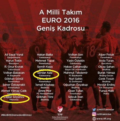 Türkiye Futbol Federasyonu milli takımın kadrosunu açıkladı. Ancak TFF'nin açıkladığı kadroya göre Bursaspor'da forma giyen Serdar Aziz, Galatasaray'ın oyuncusu olarak gösterildi. Ayrıca Freiburg'a transfer olan Çağlar Söyüncü'de eski takımı Altınordu'nun oyuncusu gösterildi.
