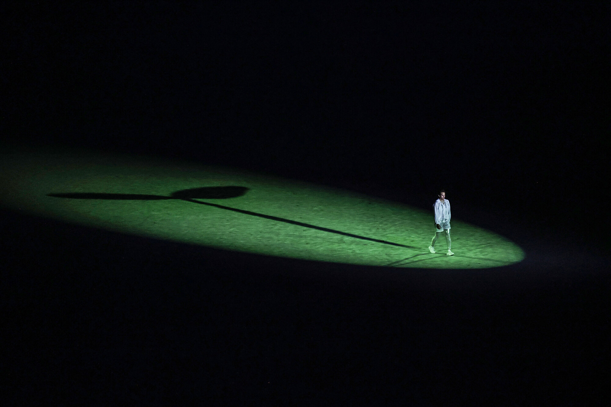 Pandemiye rağmen oyunların yapılmasına göndermede bulunan gösteride dansçılar; koşu bandı, kondisyon bisikleti ve kürek çekerek "Her şeye rağmen sporcunun spora dönmesi" sembolize edildi. Stat çatısında patlatılan havai fişekler törene renk kattı.