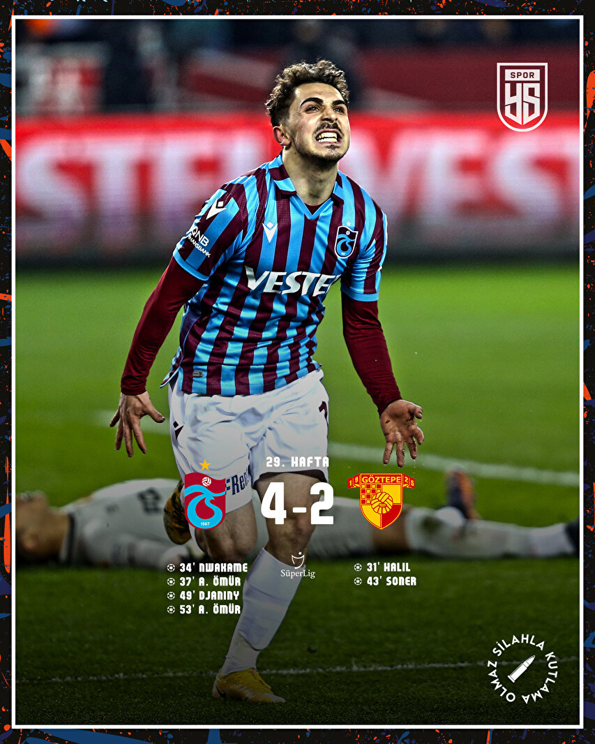 Süper Lig'in 29. haftasında Trabzonspor sahasında Göztepe'yi konuk etti. Mücadeleyi bordo-mavili ekip 4-2 kazandı.