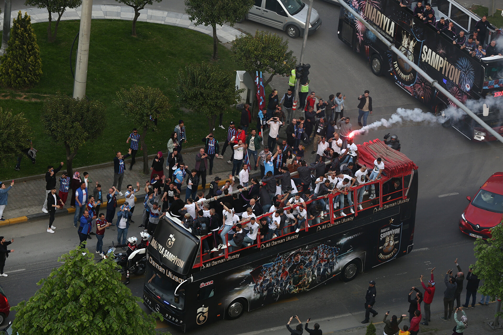 Trabzon’da bugün tam bir karnaval havası yaşandı. 'Şampiyonluk filosu'yla denizden yola çıkan bordo-mavili kafile, Trabzon Limanı'na geldi. Bordo-mavili kulübün eski başkanı Nuri Albayrak tarafından karşılanan takım, buradan üstü açık otobüsle stada geçti. Işık ve lazer gösterilerine sahne olan Medical Park Stadyumu'nda Başkan Ahmet Ağaoğlu, teknik direktör Abdullah Avcı ve futbolcular seçtikleri şarkılarla tek tek sahaya çıktı ve şampiyonluk kupasını kaldırdı.