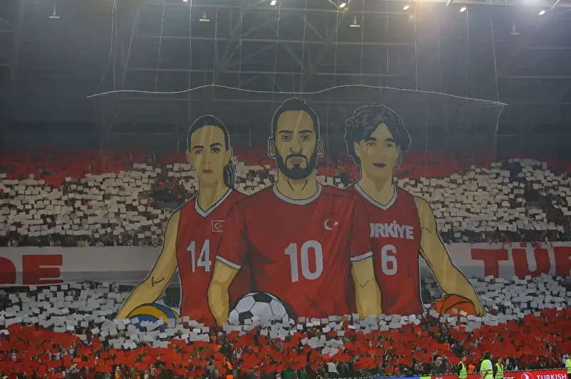 Hodri Meydan tribününde gerçekleştirilen koreografide kırmızı-beyaz renklerdeki Türkiye haritası üzerinde A Milli Kadın Voleybol Takımı Kaptanı Eda Erdem, A Milli Erkek Futbol Takımı Kaptanı Hakan Çalhanoğlu ve A Milli Erkek Basketbol Takımı Kaptanı Cedi Osman’ın görselleri yer aldı.