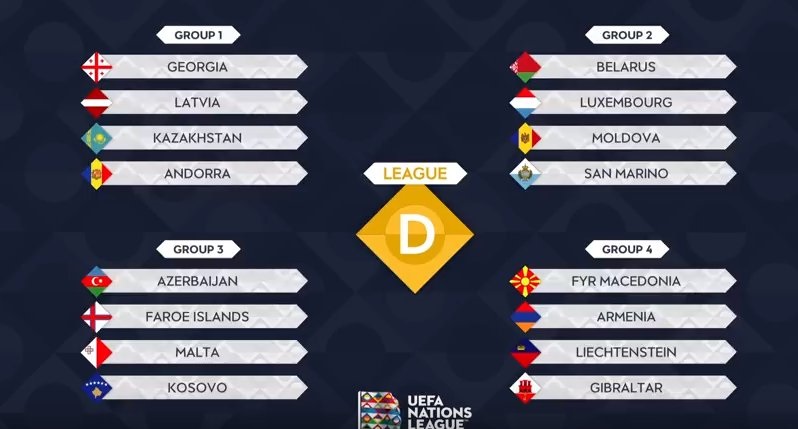 D Ligi'ndeki 16 takım, dörderli 4 gruba ayrılacak. Grup liderleri, C Ligi'ne yükselecek. EURO 2020'ye katılamayan en çok puana sahip 4 ülke, Mart 2020'de Avrupa Şampiyonası finallerine gidecek takımı belirlemek için play-off oynayacak.