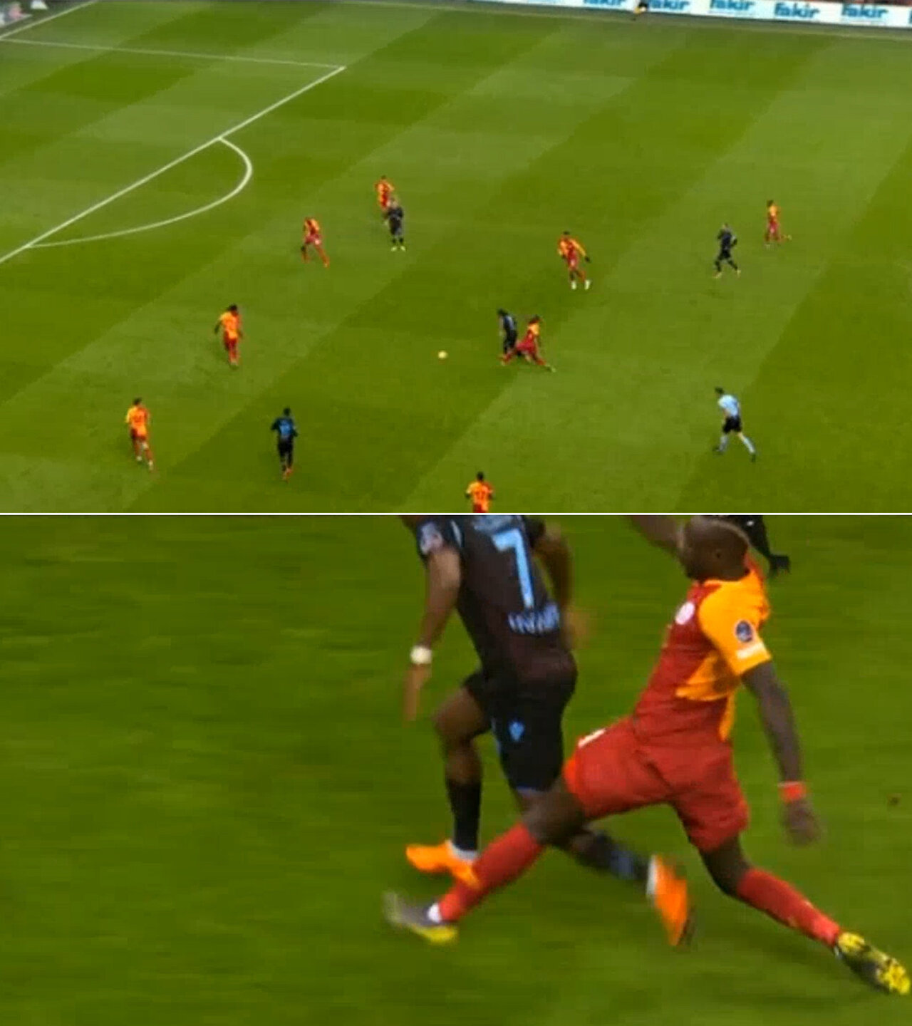 Ümit Öztürk ilk yarının son dakikalarında Diagne'nin yaptığı harekete sarı kart göstermeyerek de Trabzonsporluların tepkisini çekti.