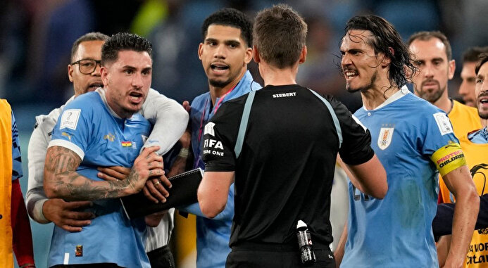 Katar Dünya Kupası H grubu son maçında Gana'yı 2-0 mağlup etmesine karşın elenen Uruguay'da maç sonu hakem Daniel Siebert'e tepki gösterilmiş. Bitiş düdüğü sonrası bazı futbolcular Alman hakemin etrafını sarmış hatta itmeye varan dozu yüksek tepkiler verilmişti. FIFA'nın bu olayla ilgili kararı merak ediliyor. Detaylara haberimizin içerisinden ulaşabilirsiniz.