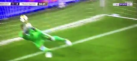 Trabzonspor, Fenerbahçe ile oynadığı mücadelenin 56. dakikasında Olcay Şahan'ın attığı golle 2-1 öne geçti. Milli futbolcunun şutunda Volkan Demirel, Göztepe maçında yediği golün bir benzerini yedi.