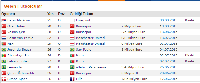 Manchester United'dan Van Persie, Nani, Bursaspor'dan Fernandao, Şener, Ozan Tufan, Volkan Şen, Lille'den Simon Kjaer, Sao Paulo'dan Josef de Souza, Porto'dan Abdoulaye Ba ile Fabiano ve Liverpool'dan Lazar Markovic'i transfer eden sarı lacivertliler sadece Ba, Fabiano ve Markovic için bonservis bedeli ödemedi. Üç futbolcu da bedelsiz olarak kiralandı.