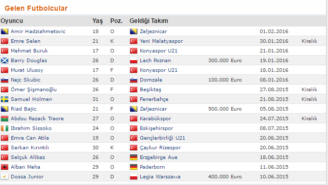 Fenerbahçe'yi 2-1 yenen ve Süper Lig'de 3.sırada bulunan Torku Konyaspor ise sezona mütevazı bir kadro yapılanmasıyla girdi. Sezon başında transfer ettiği futbolculara sadece 1.7 milyon euro bonservis bedeli ödeyen Torku Konyaspor yönetimi alınan oyuncularda ise tam isabet sağladı. Takımın en etkili isimlerinden olan Alban Meha'yı bonservis bedelsiz kadroya katan Konyaspor yönetimi, Holmen ve Traore gibi isimleri de herhangi bir bedel ödemeden kiraladı.