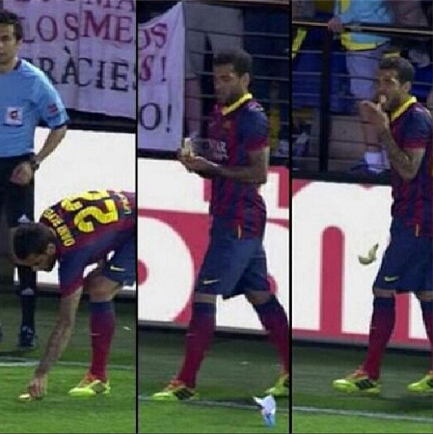 La Liga'da geçtiğimiz sezonun 35. haftasında Barcelona'nın deplasmanda Villarreal'i 3-2 yendiği maçta Barcelonalı futbolcu Dani Alves'in, kendisine yapılan ırkçı harekete verdiği tepki, uzun dönem futbol kamuoyunda gündemde yer almıştı.