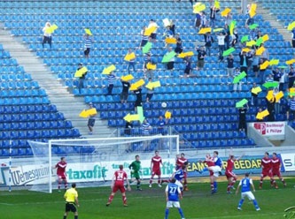 Almanya'nın 4. Lig'inde mücadele eden Magdeburg takımının taraftarları, 2012 yılında esprili bir protestoya imza atmıştı. Takımlarının 25 maçta sadece 16 gol atması ve son 5 karşılaşmada ise gol sevinci yaşayamaması üzerine sabrı taşan taraftarlar, tepkisini Berliner Ak takımına karşı oynadıkları maçta esprili bir dille gösterdi.