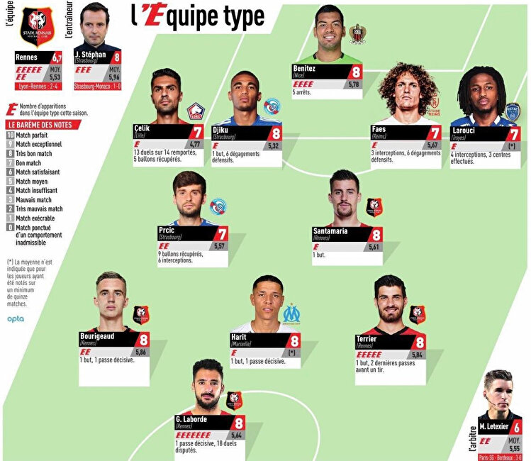 Fransız spor gazetesi L'Equipe, Ligue 1'de 28. hafta maçları sonrası en iyi 11'e giren oyuncuları açıkladı.