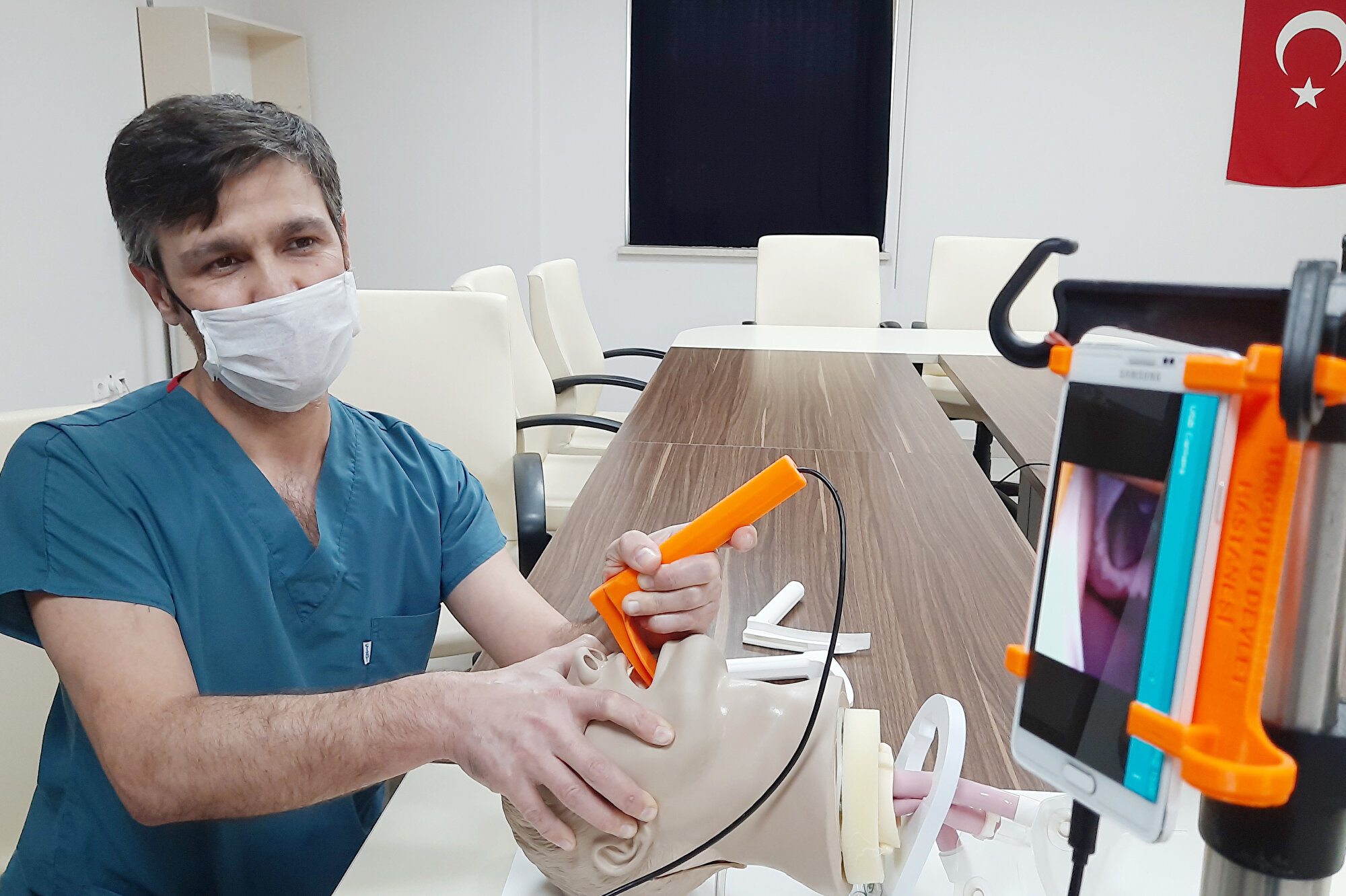 Öğrencilerin geliştirdiği yazılım ve 3D yazıcı ile entübasyon tüpünün yerleştirilmesinde kullanılan cihaz üretildi.