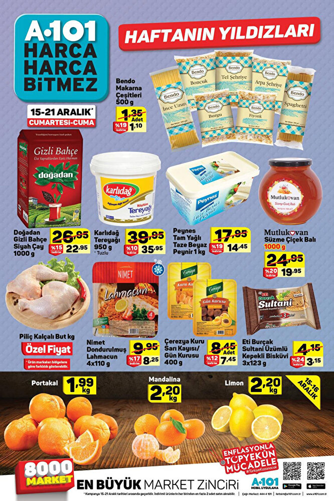 A101, 20 Aralık aktüel ürünler listesine eklediği bu ürünler haricinde yüzlerce indirimli ürüne de raflarında ve spot masasında yer verecek. İşte A101’in 20 Aralık aktüel ürünler kataloğunda yer alan diğer ürünler ve fiyatları: