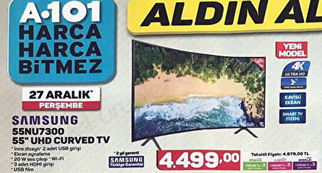 A101 4.499 TL’YE SAMSUNG 55 NU7300 55 İNÇ UHD CURVED TV SATACAK!