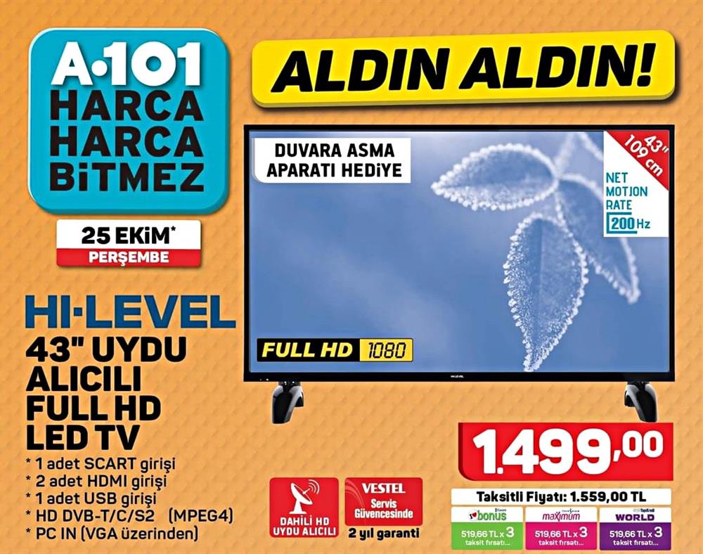 HI-LEVEL 43 İNÇ UYDU ALICILI FULL HD LED TV ÖZELLİKLERİ!